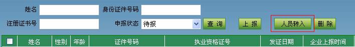 请先做人员转入查询您要做变更的人员。点击所标注的“人员转入”按钮。