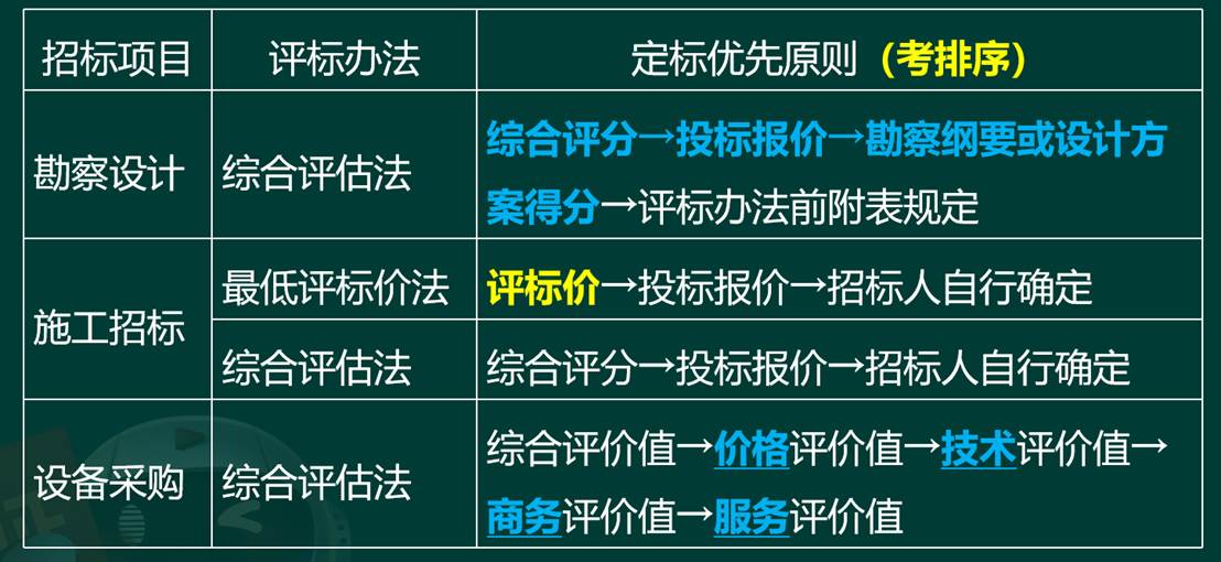 勘察设计、施工、设备采购招标的定标原则(1分)