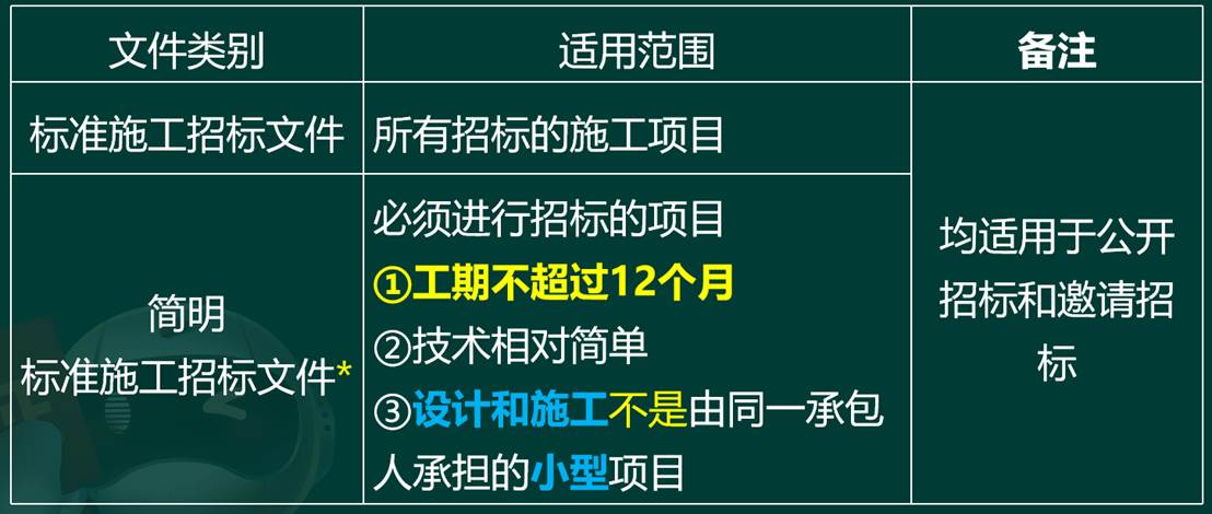 答察解析: 《简明标准施工招标文件》适用范围:工期不超过12个月、技术相对简单且设计和施工不是由同一承包人承担的小型项目。