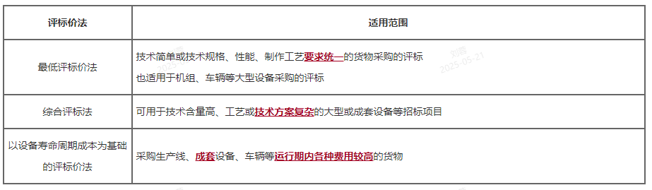 该方法既适用于技术简单或技术规格、性能、制作工艺要求统一的货物采购的评标,也适用于机组、车辆等大型设 备采购的评标。