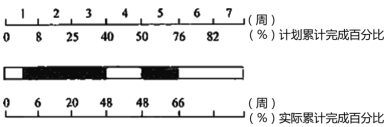 (2) 实际累计百分比<计划累计百分比,实际进度滞后。滞后时间=实际累计百分比-计划累计百分比