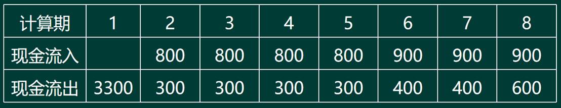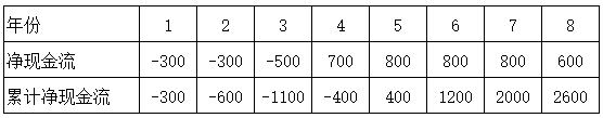 根据静态投资回收期的计算公式,Pt=(5-1)+丨-400 丨/800=4.50(年)。