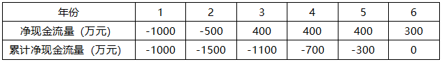 选项C错误,选项D正确,动态投资回收期超过6年,即当基准收益率为5%时,计算期内的累计净现值小于0,因此内部收益率(在计算期内各年净现金流量的现值累计等于零时的折现率)小于5%。