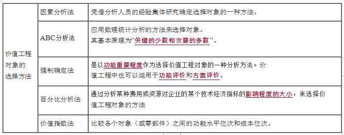 (1)因素分析法。又称经验分析法,是指根据价值工程对象选择应考虑的各种因素凭借分析人员的经验集体研究确定选择对象的一种方法。