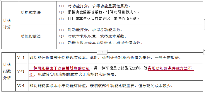 1)V₁=1。评价对象的功能比重与成本比重大致平衡,合理分配,可以认为功能的现实成本是比较合理的。