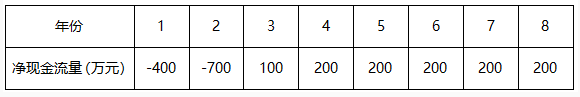 则净现值=-370-300×(1+8%)-1+400×(1+8%)-2+0+400×(1+8%)-4=-10.83万元<0,方案不可行。