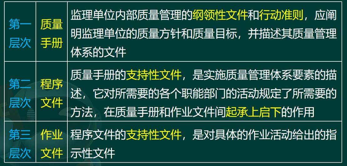 工程监理单位的质量管理体系文件由三个层次的文件构成: