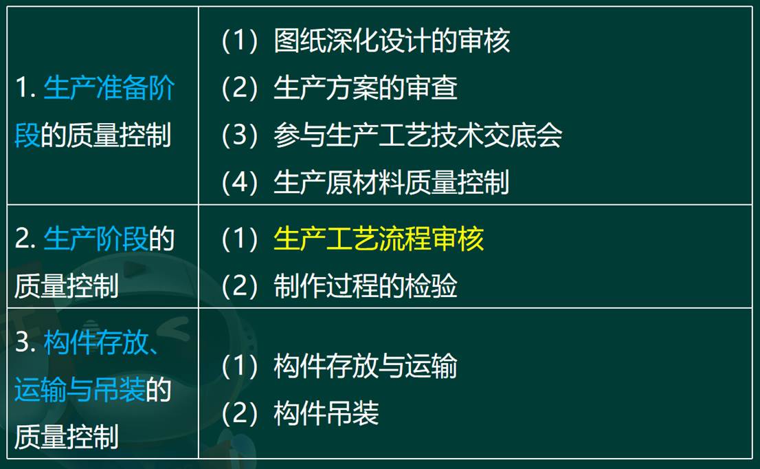 (2)生产方案的审查。预制构件和部品生产中采用新技术、新工艺、新材料、新设备时,生产单位应编制专门的生产方案,并报项目监理机构审核;必要时进行样品试制,经检验合格后方可实施。