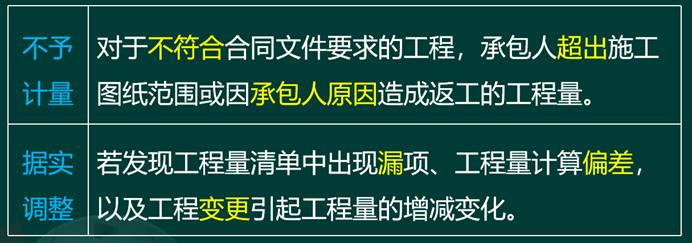 答察解析: 选项A正确,工程量计量按照合同约定的工程量计算规则、图纸及变更指示等进行计量。