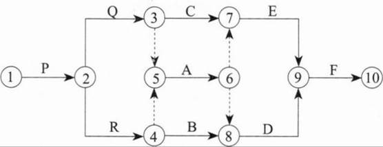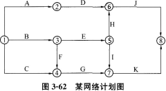 在网络图中,相对于某工作而言,紧排在该工作之前的工作称为该工作的紧前工作.在双代号网络图中,工作与其紧前工作之间可能有虚工作存在。如图 3-3 所示,支模 1是支模 2 在组织关系上的紧前工作;扎筋 1和扎筋2之间虽然存在虚工作,但扎筋1仍然是扎筋 2 在组织关系上的紧前工作。支模 1 则是扎筋 1在工艺关系上的紧前工作。