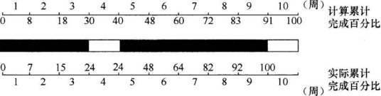 (2) 实际累计百分比<计划累计百分比,实际进度滞后。滞后时间=实际累计百分比-计划累计百分比
