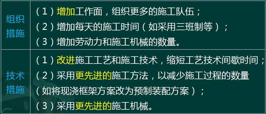 (1)改进施工工艺和施工技术,缩短工艺技术间歇时间;