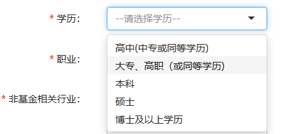 基金从业资格证报名过程中,需要填写个人相关信息,包括学历。如下图所示: