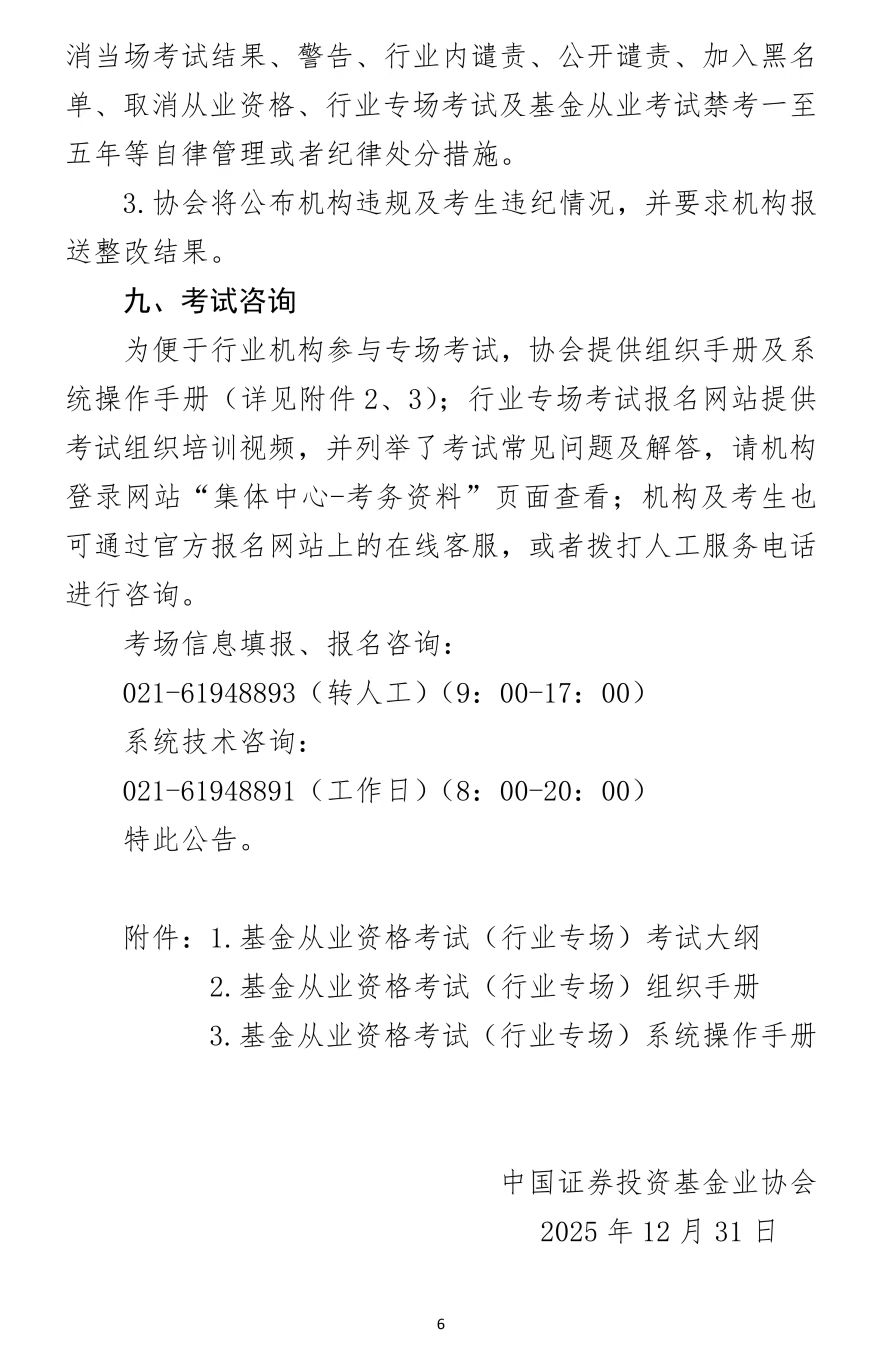 刚刚收到消息,2026年1月基金从业资格行业专场考试时间确定于1月30日举行,目前通知已下发至各公司,大家可以关注公司报名通知(部分公司可报名,详见下文)。本次考试时间为1月30日,报名时间1月6日-1月19日,面向行业机构开展。公告内容如下:(以下为考生反馈,仅供参考,具体以官方通知为准)