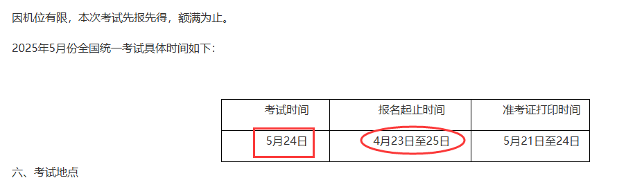 | 2025年 | 5月24日(统考) | 4月23日-25日 |