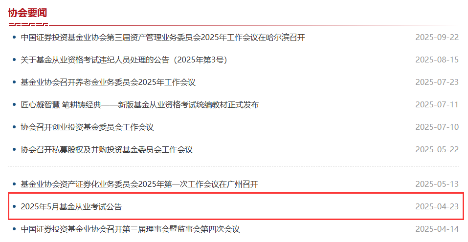2026年5月基金从业资格考试报名通知出了吗?目前暂未发布。根据近几次基金从业资格统考报名通知发布时间,预计报名通知即将发布,请大家做好报名准备。以下为2025年基金从业资格全国统一考试报名通知发布时间,5月24日考试,4月23日发布报名通知并开始报名。
