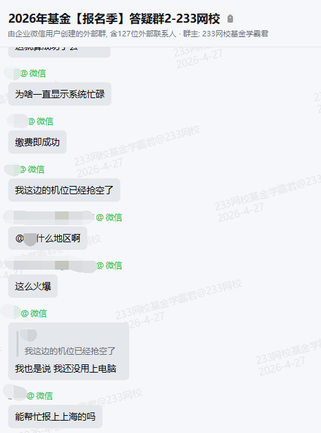 2026年5月基金从业资格全国统考报名已经开始,根据上午报名情况来看,本次报名超级火爆,热门地区很快就“机位已满”了,很多考生报名显示“系统繁忙”!详情如下: