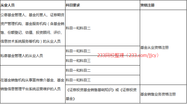 答:参加中国证券投资基金业协会统一组织的科目一《基金法律法规、职业道德与业务规范》、科目二《证券投资基金基础知识》和科目三《股权投资基金基础知识》(2016年9月份推出)。参加考试的人员通过科目一和科目二考试,或通过科目一和科目三考试成绩合格的,均可申请注册基金从业资格。