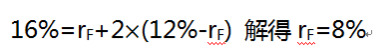 4、假设资本资产定价模型成立,某股票的预期收益率为16%,贝塔系数(β)为2,如果市场预期收益率为12%,市场的无风险利率为()。
