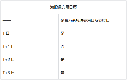 港股通在证券交收时点上,实行T+2交收安排。T日买人港股通标的证券的投资者,T+2日日终完成交收后才可获得相关证券的权益;T日卖出港股通标的证券的投资者,T日和T+1日日终仍可享有关于证券的权益。(T日,是指“港股通”交易日;T+1日,是指“港股通”交易日后第1个“港股通”交收日;T+2日,依此类推。)