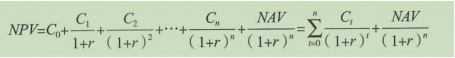 【真题考点】内部收益率(IRR),是指截至某一特定时点,倒推计算至基金成立后第一笔现金流产生时,基金资金流入现值加上资产净值现值总额与资金流出现值总额相等,即净现值(NetPresentValue,NPV)等于零时的折现率。内部收益率体现了投资资金的时间价值。其计算公式如下: