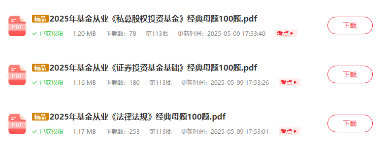 母题包含科目:基金法律法规、证券投资基金、私募股权投资基金