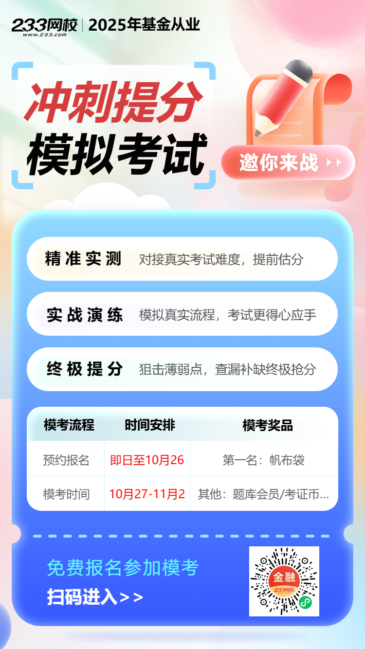 2025年11月基金从业资格考试进入倒计时,你还在为刷什么题发愁吗?11月基金【冲刺提分】模考大赛火热进行中,赶紧来!遇到疑问还可以进入训练营群在线咨询专业老师,让你备考不留疑问!