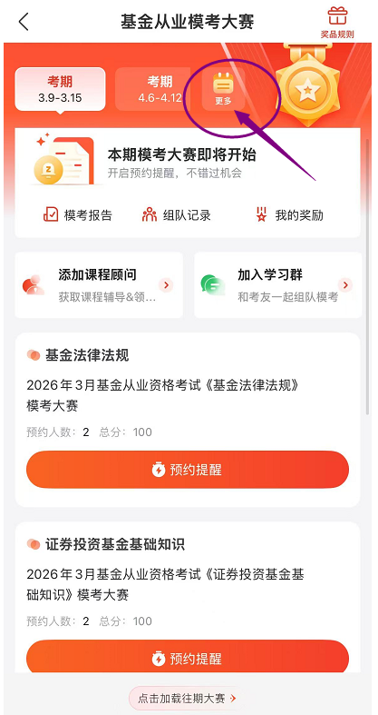 2026年基金从业考生可以在每期开赛之前单独预约提醒,也直接一次性完成全年模考大赛订阅!均是免费!