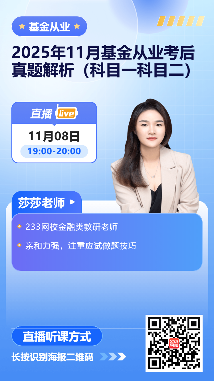 2025年11月基金从业考试估分哪里有?来233网校就对了!233网校将在考试结束后更新本次真题及答案解析,同是安排了真题对答案直播,大家可以提前下载233网校APP,下考后及时收到估分提醒,抢先估分知成绩!