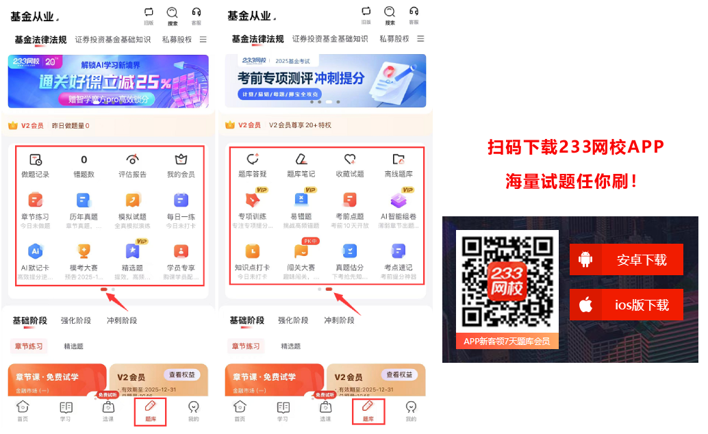 题库路径:打开【233网校APP】→【基金从业】→【题库】