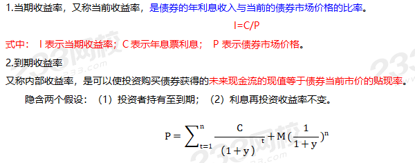 (2)债券市场价格越偏离债券面值,期限越短,则当期收益率就越偏离到期收益率。