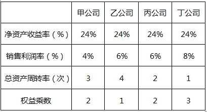 从表格中可看出,乙公司的总资产周转次数最高,意味着乙公司平均每90天(360/4)存货周转一次。其资产使用效率最高。