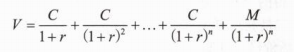 式中:V——固定利率债券的内在价值;C——每期支付的利息;M——面值;r——市场利率;n——债券到期时间。