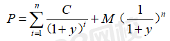 ,其中:P表示债券市场价格,C表示每期支付的利息,n表示时期数,M表示债券面值。