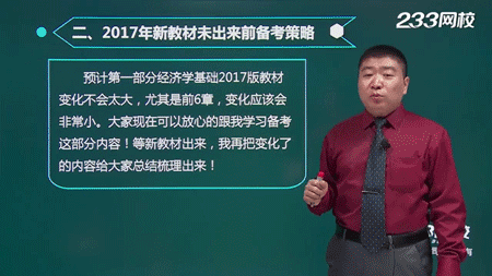 在前言部分槐俊升老师主要讲到中级经济基础的考试情况以及2017年新教材未出版前的备考策略。中级经济基础第一部分预计变化不大,尤其是前6章,现在可以跟着槐老师一起来学习变动不大的内容。下载经济师手机APP,用手机看视频更方便哦,站着、坐着、躺着……听课程姿势任你选。同时用手机APP下单,还可以减20元。在新教材出版之前所更新的新内容,在手机app上都是可以免费看的哦!