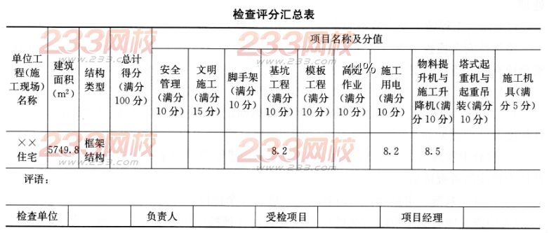 (5)计算各分项检查分值,填入检查评分汇总表,并计算本工程总计得分。