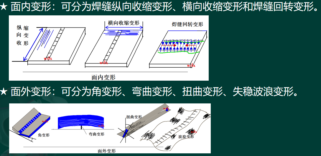 面外变形:ADE选项正确,可分为角变形、弯曲变形、扭曲变形、失稳波浪变形。