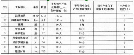 根据施工总体计划和分项工程生产率和施工周期表中已知数据完成未完成的部分。