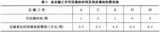表2假定所有关键工作压缩后不改变关键线路。