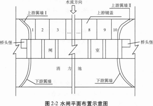 某大型水闸工程建于土基上,其平面布置示意图如图2-2所示。