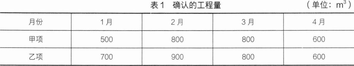 承包商各月实际完成并经监理工程师签证确认的工程量见表1。