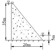 1、某混凝土坝上、下游作用水头如图所示,则上游坝面单位宽度作用面上的静水压力为( )(水的重度为9.80kN/m³)。