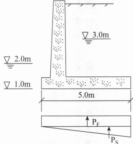 1、下图为某挡土墙底板扬压力示意图。该挡土墙底板单位宽度的扬压力为()kN(水的重度γ=10kN/m3)。