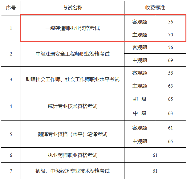 2026年陕西一级建造师考试收费标准已发布,其中,客观题每人每科56元,主观题每人每科70元,四科费用合计238元。详情如下: