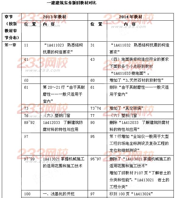 2014年一级建造师《建筑工程实务》新旧教材对比