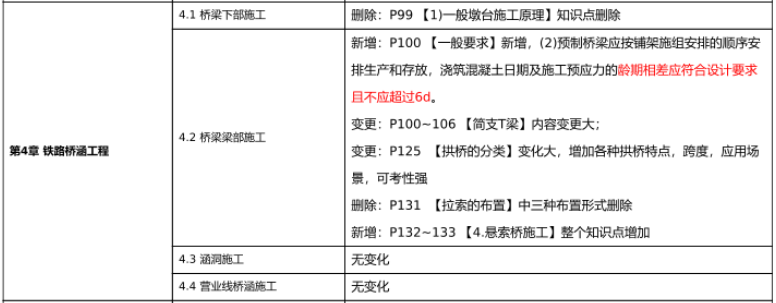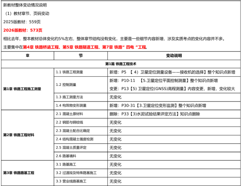 2026年一级建造师《铁路工程》新旧教材变化对比表