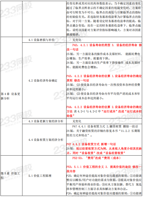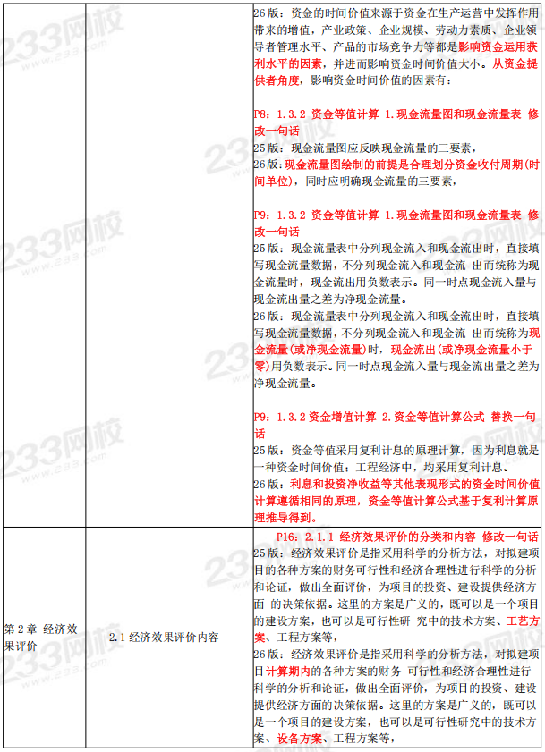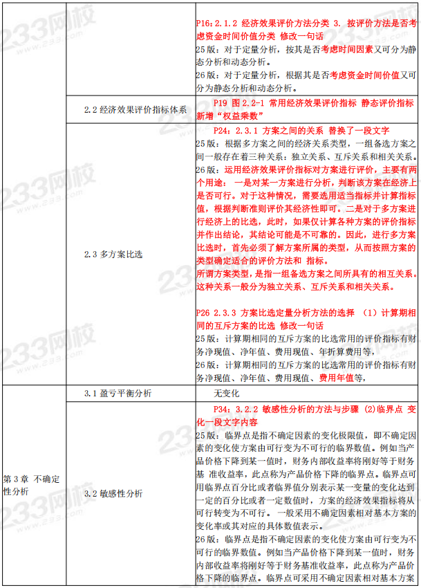 2026年一级建造师《经济》教材变化对比表