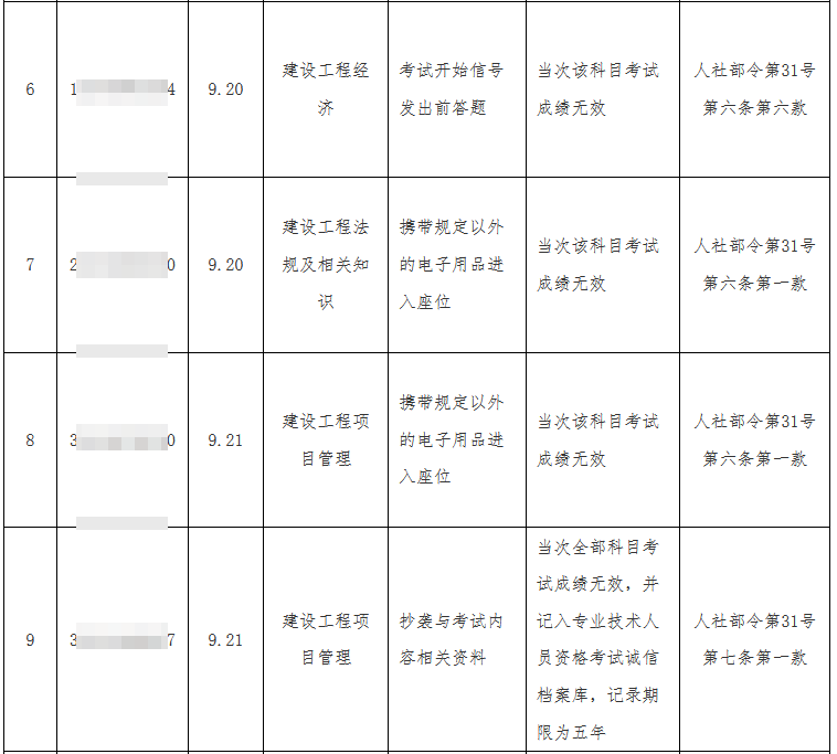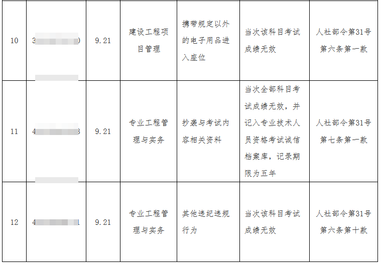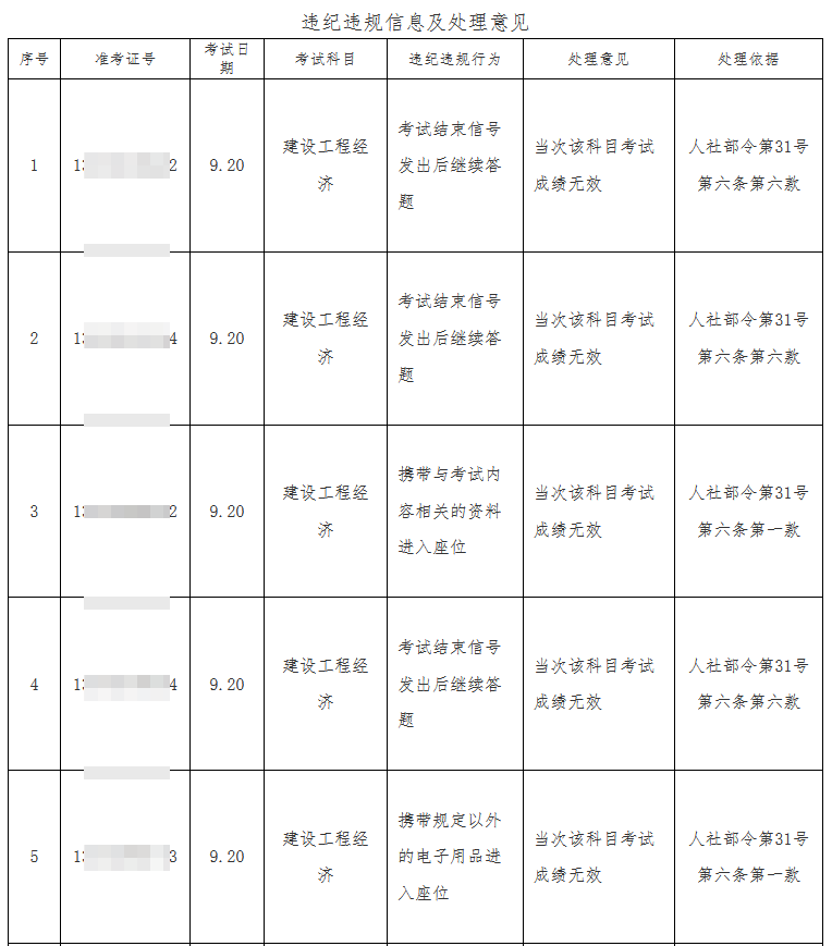 根据《专业技术人员资格考试违纪违规行为处理规定》(人社部令第31号)相关条款规定,现将本市2025年度全国一级建造师职业资格考试中已认定的违纪违规考生信息和处理意见公告如下,考生如对所认定的违纪违规事实存在异议,可在公告发布之日起5个工作日内向我院陈述和申辩,逾期未陈述申辩的视为认可违纪违规事实和处理意见。联系电话:96999001。对评卷过程中发现的违纪违规行为,按照相关规定进一步处理。