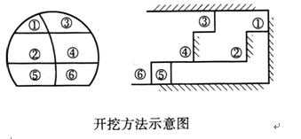 指出开挖方法示意图所示施工开挖方法的具体名称。