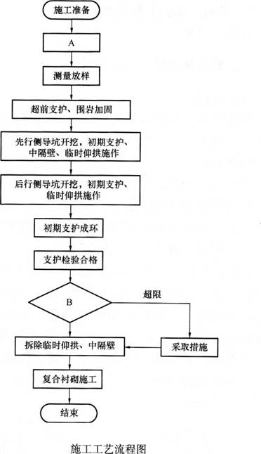 某施工单位承建客运专线某黄土隧道工程。该工程为单洞双线隧道,全长4300m,起止里程为DK126+000~DK130+300。隧道围岩级别以Ⅳ、V级为主,DK127+500~DK127+900段局部有地下水。全隧按进、出口两个工区组织施工。该隧道V级围岩地段采用开挖方法示意图所示的开挖方法施工,施工工艺详见施工工艺流程图。施工中发生以下事件: